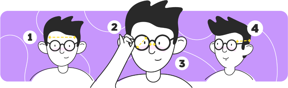 - Temple length: the frame temples also distribute the weight of the glasses, onto the ears, and should be long enough to allow a straight path from temple to ear.