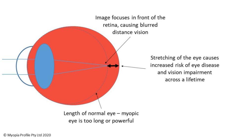 This excessive growth of the eye stretches the retina – the light sensitive layer lining the back of the eye – and the stretching increases risk of eye diseases and vision impairment occurring across your child’s lifetime.5